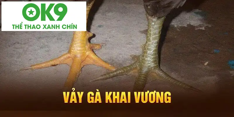 Vảy gà khai vương là một loại vảy đặc biệt và cực kỳ hiếm gặp ở gà chọi. Nó được tạo thành bởi 4 vảy nhỏ hình chữ nhật xếp chồng lên nhau, tạo thành một hình vuông hoàn chỉnh, giống với chữ “Vương” (王) trong Hán tự. Chính vì hình dáng đặc biệt này mà nó được gọi là “khai vương”. Vị trí của vảy khai vương thường nằm sát với ngón chân của chiến kê, dễ dàng phân biệt với các loại vảy khác.